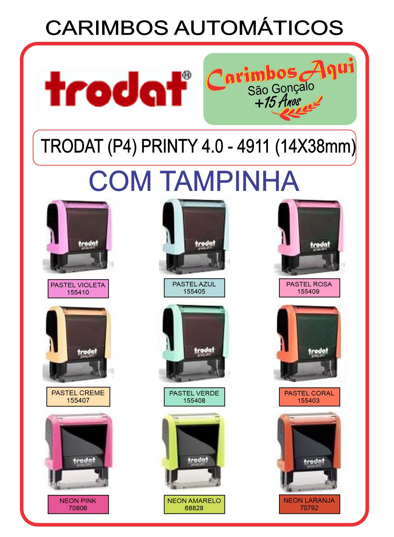 VALOR CONFORME TAMANHO DO CARIMBO